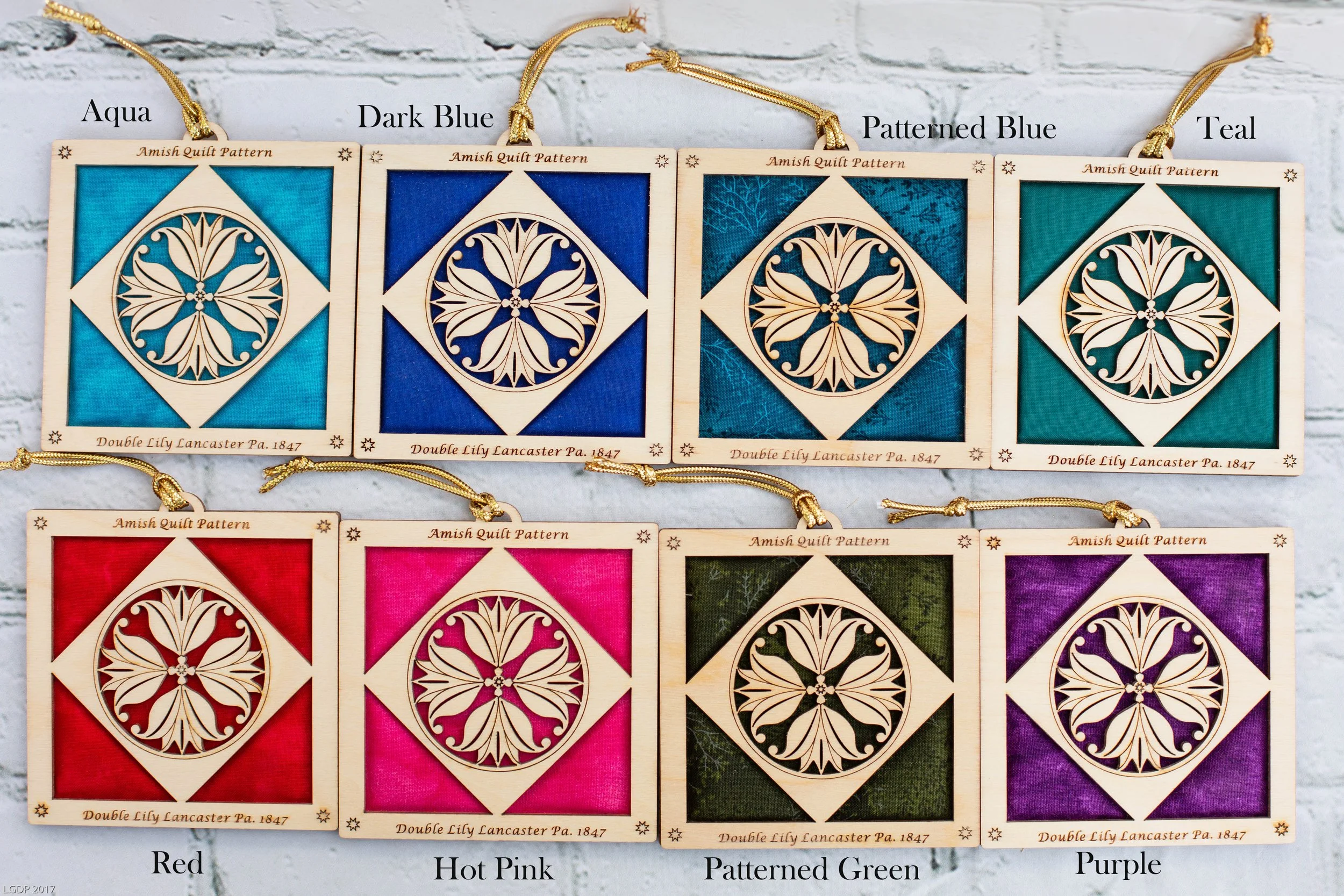 The ornaments include the name and origin of each quilt pattern. They are completely handcrafted with attention to detail in the USA. Each ornament comes in multiple colors. Most fabrics are solid or marbled fabric but pattern and color may vary slightly due to availability. If this is a concern to you feel free to message us and we'll do our best to accommodate you. This makes the perfect gift for your quilting and sewing friends or anyone who wants a unique handmade gift. Thank you for supporting our small family business!
